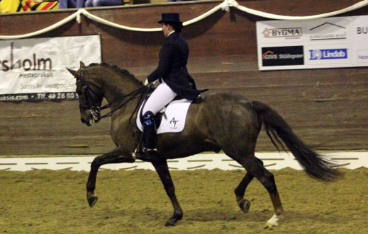 Her ses dagens bedste dressurhoppe: Dina Holmklit e. Hesselhøj Donkey Boy x De Noir fra Trine Udklit Sørensen. hoppen er ejet af Kristin Andresen Norge og hun blev redet af Jan Christensen.
