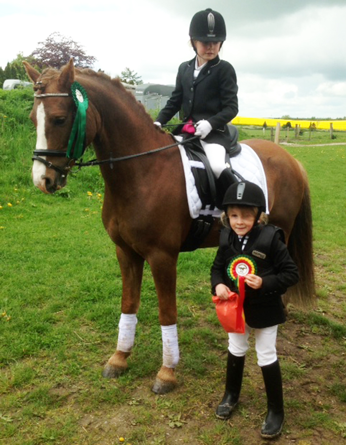 Pigerne er heldige at have en mor, der selv begyndte at ride, da hun var 4 år gammel, og Maria ved hvad det indebærer at hellige sig ponysporten. Maria underviser selv begge børnene, så hun kan med god grund være stolt af de resultater, de har opnået på kort tid.