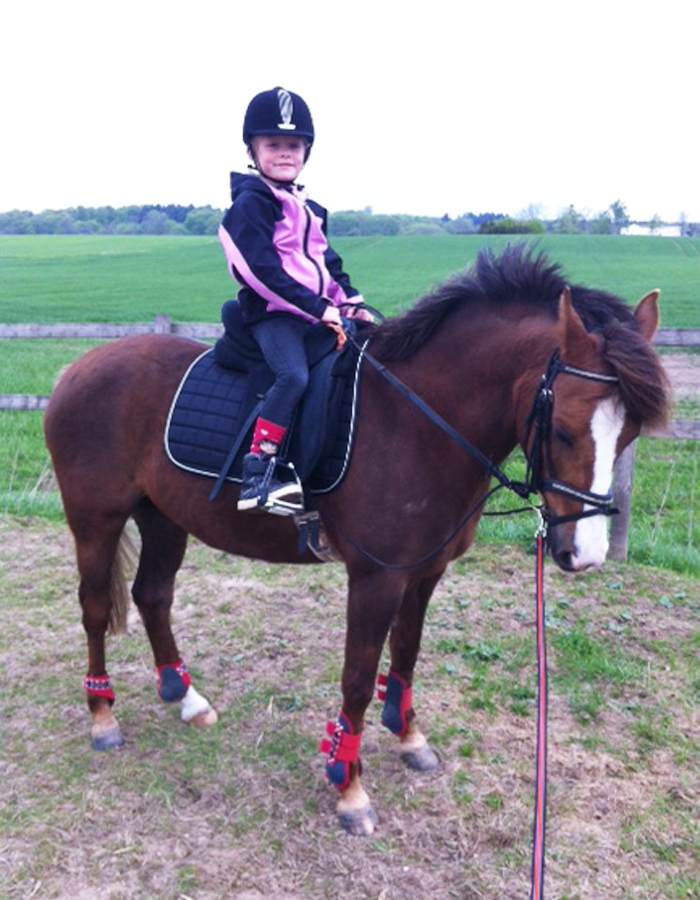 “I Foråret 2013 blev jeg ringet op af en gamle "rideveninde", mens jeg sad og havde stress over en eksamens opgave. Hun havde fundet en pony på nettet, som hun syntes så rigtig fin ud. Hun foreslog, at vi skulle dele ponyen mellem vores piger, så de kunne lære at ride uden at gå på rideskole.